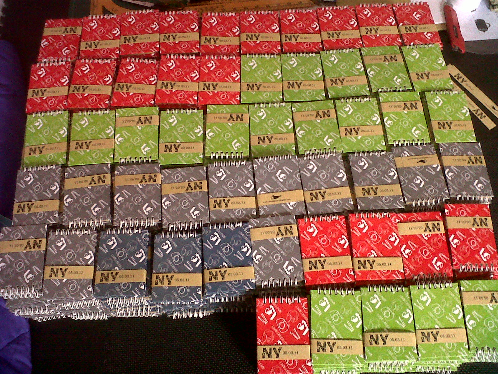 And here are the result. a little notebook with pattern cover. the pattern design contains icons of things that represent the newlywed. there's a camera, headphone, clapper, and a series of words says Live.Learn.Love.